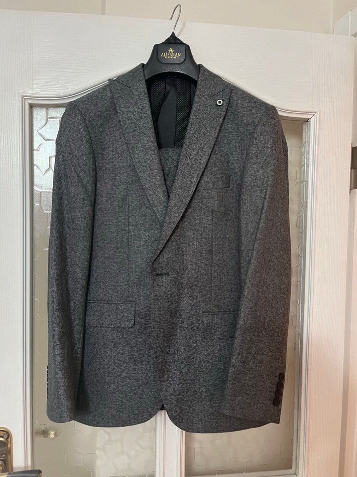 sadece bir kere giyildi. küçük geldiği için satıyorum. ceket, yelek, pantolon ve kravat hepsi içindedir