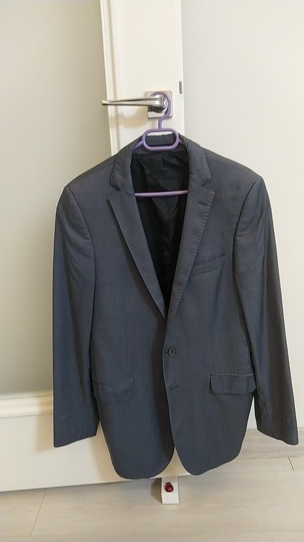 Gri renkli erkek takım elbise ceketi, düğmeli ve normal kesimdir. Uzun kollu, desen içermeyen ve midi boyda olup ofis ve iş ortamları için uygundur. ️