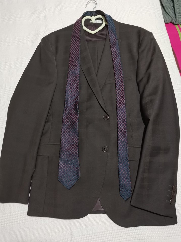 Gri renkli erkek takım elbisesi, regular fit kesime, düğmeli ön kapamaya ve notch yaka tasarımına sahiptir. Strappy kollu ve tie-dye desenlidir. Midi boyda klasik ve modern bir şıklık sunar.