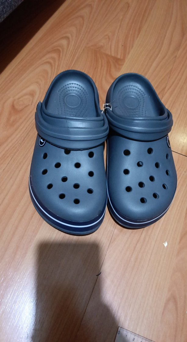 Gri renkte, kayışlı tokalı, desen içermeyen sade erkek terlikler, günlük kullanım için uygundur.