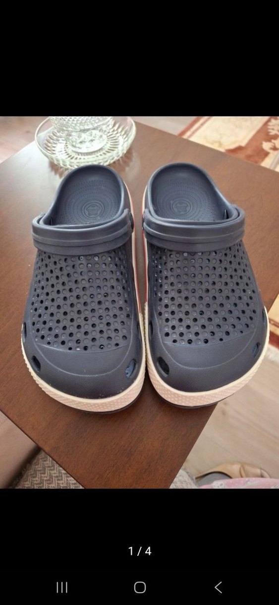Dayanıklı kauçuktan yapılmış, tokalı gri erkek terlikleri. Nefes alabilir delikli tasarımı ve sade normcore stiliyle günlük kullanıma uygundur.
