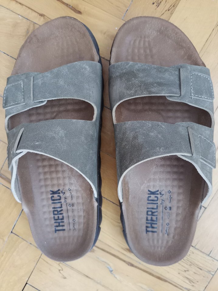 Tokalı kayışlara ve rahat kauçuk tabana sahip gri erkek terlikleri, günlük rahat kullanım için uygundur. Trend bir görünüm sağlar.