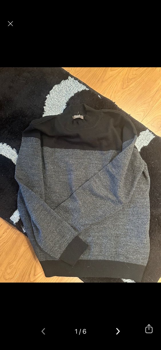 Bu erkek kazağı, bisiklet yaka ve uzun kollu, örgü yün kumaştan üretilmiştir. Gri renk bloklu, rahat kesim ve günlük sokak stiline uygundur.