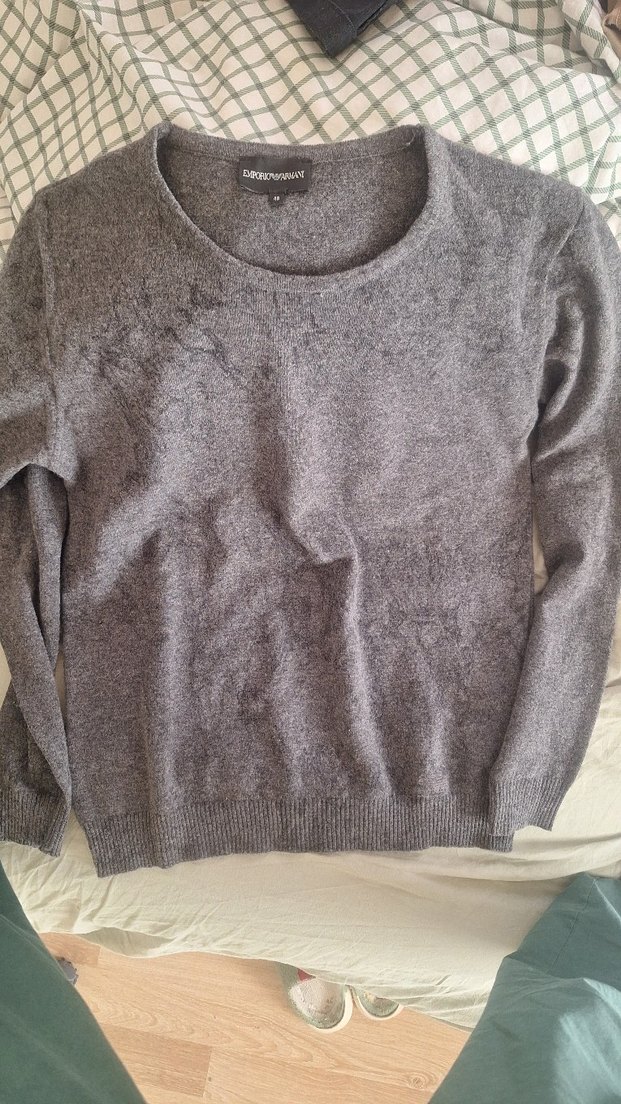 Gri renkte, bisiklet yaka ve uzun kollu, %80 yün , %20 Polyamid kazak. 48 (s-m) bdedenw denk geliyor