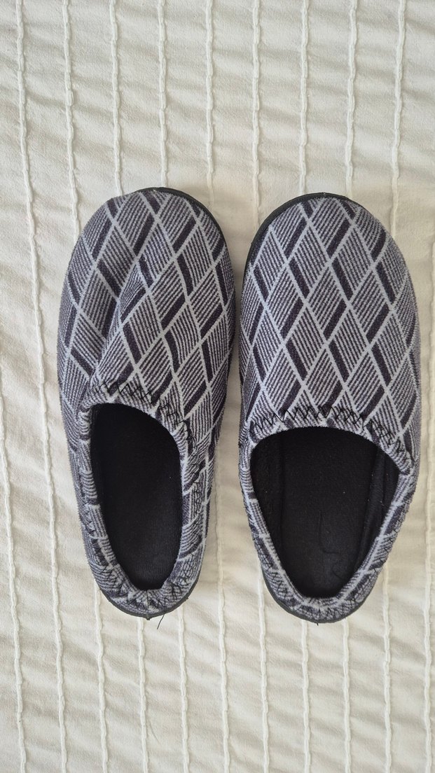 Gri renkli, triko dokuma üst yüzeye sahip erkek ev terliği, rahat ve yumuşak bir kullanım sunar.