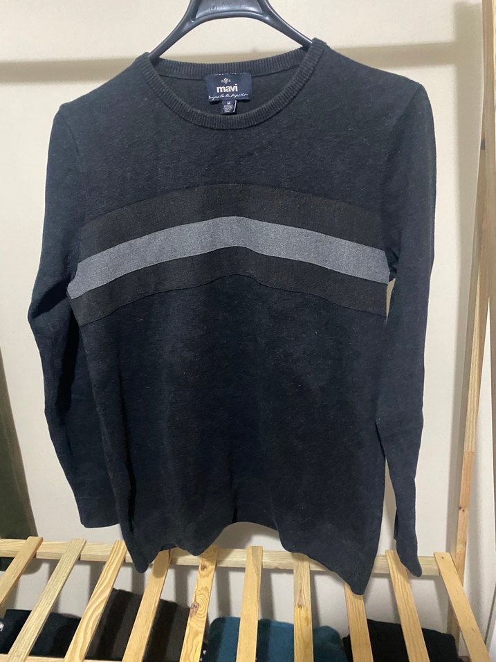 Gri renkli, uzun kollu, yuvarlak yaka erkek triko kazak. Yumuşak yün kumaştan, örme dokuda ve regular fit kesime sahiptir.