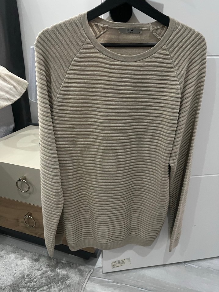 Gri renk, uzun kollu, yuvarlak yaka erkek triko. Rahat kesim ve örgü dokusuyla günlük sokak stiline uygundur. Bej rengi
