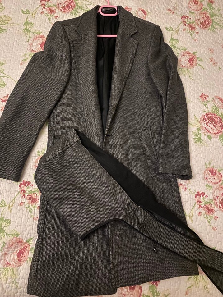Gri renkte, düğmeli ve uzun kollu erkek palto. Regular fit kesim, notched lapel yakalı ve sentetik kumaştan üretilmiştir. Ofis kullanımı için uygundur.
