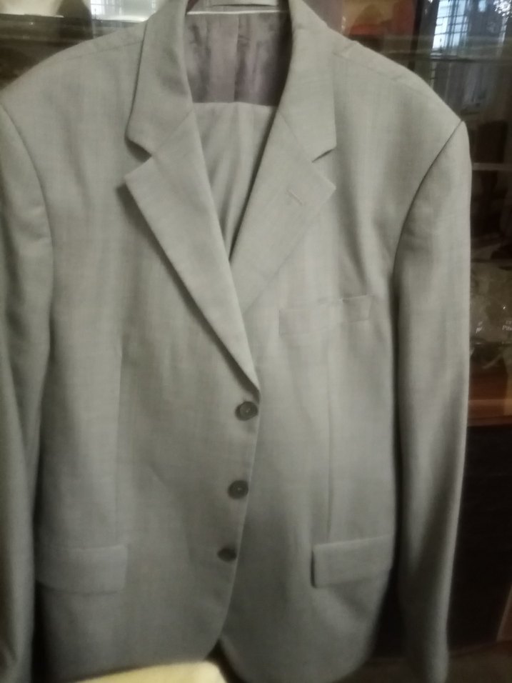 Tertemiz az giyilmiş Gri renkli, düğmeli önü ve uzun kollu, klasik zarafette modern klasik tarzda ofis kullanımı için uygun uzun kesim erkek takım elbisesi.