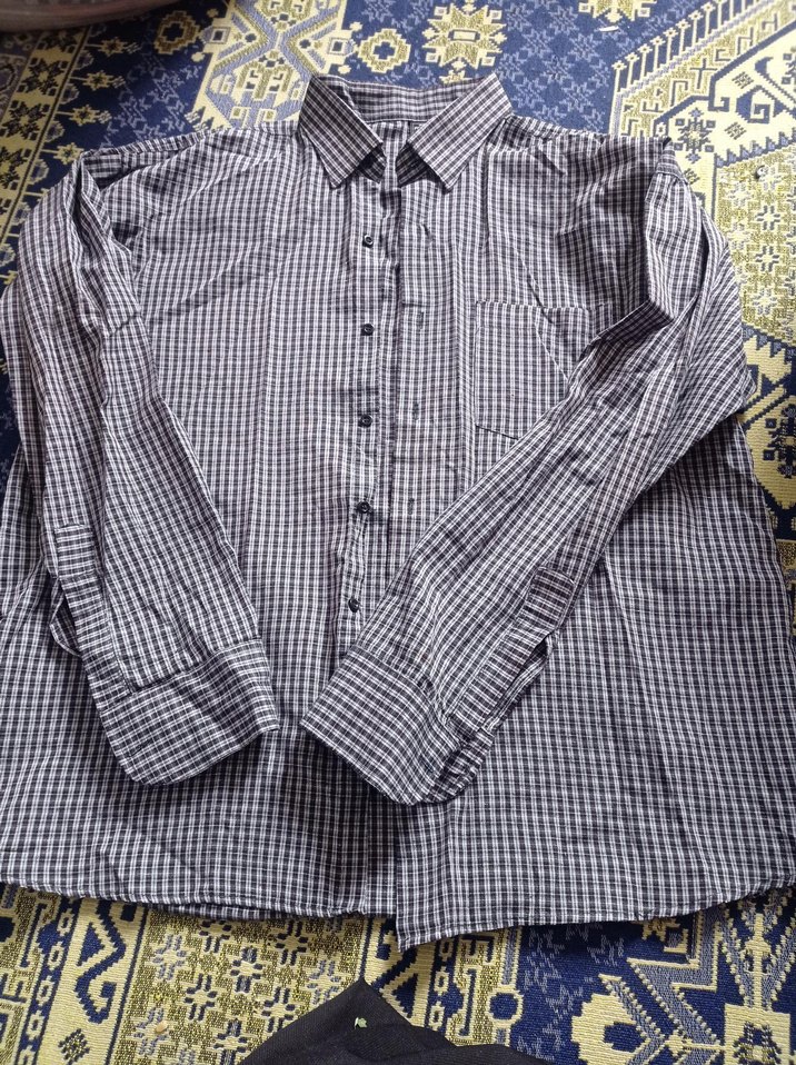 Gri kareli desene sahip, uzun kollu ve düğmeli erkek gömleği. Regular fit ve normal boyda, sentetik kumaştan, günlük sokak stili için uygun.