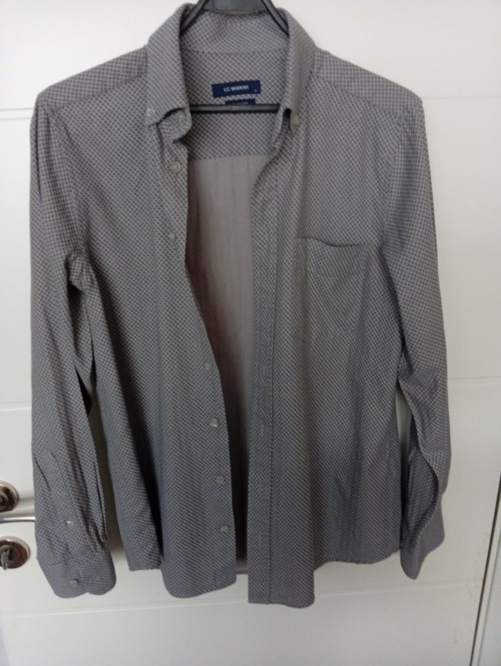 Gri renkte, uzun kollu ve düğmeli erkek gömleği. Normal kesim, notched lapel yakalı, sentetik kumaştan üretilmiştir. Ofis ve günlük kullanıma uygundur. göğüs 52 cm , boy 72 cm , kol boyu 63 cm