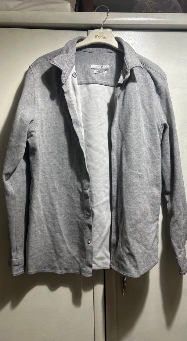 Gri renkli, uzun kollu ve düğmeli erkek gömleği. Notched lapel yakaya sahip, normal kesim ve yumuşak sentetik kumaştan üretilmiştir. Günlük kullanıma uygundur.