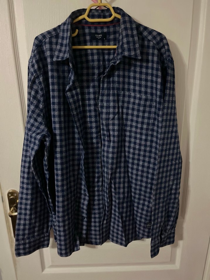 Gri renkli, düğmeli ve yakalı uzun kollu erkek gömleği. Denim kumaştan üretilmiş, bol kesim ve günlük sokak stili için uygun.