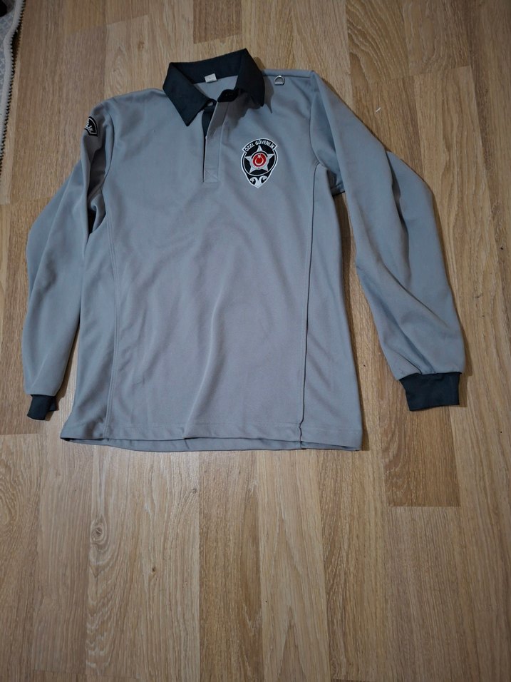 Uzun kollu güvenlik tişort , siyah yakalı ve düğmeli gri polo tişört. Yumuşak ve sıcak kumaştan, baskılı detaylı,