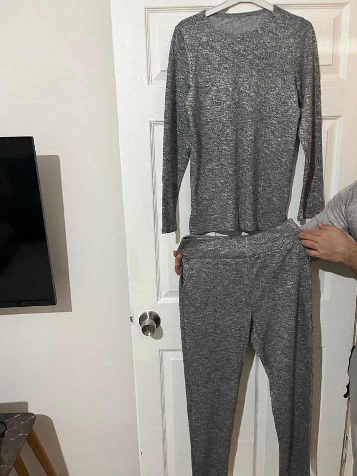 Gri renkte, uzun kollu ve bisiklet yaka olan kadın pijama takımı, rahat kesimi ve şık sade tasarımıyla konfor sağlar.