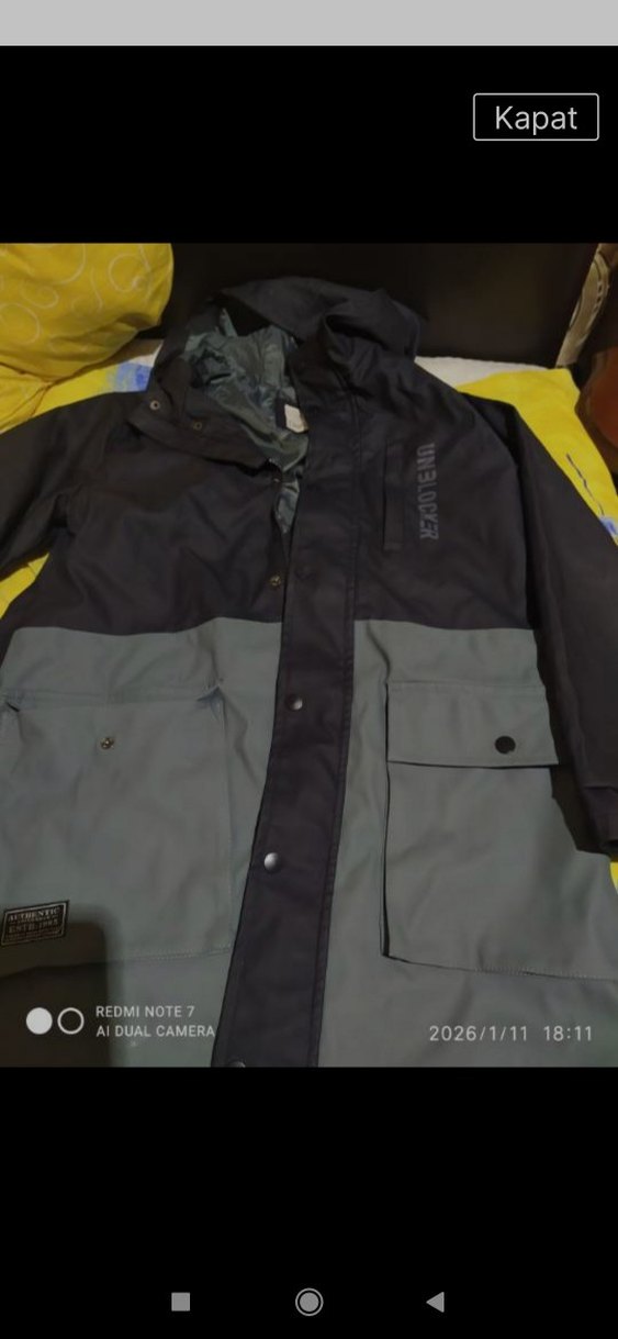 Gri renkli, uzun kesim erkek mont, sentetik kumaştan, düğmeli ve uzun kollu. Streetwear tarzında, rahat ve şık bir dış giyim ürünü.