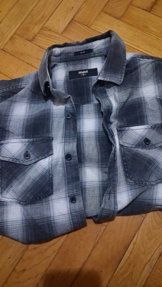 Gri renkli kollu ve düğmeli erkek gömleği. rahat kullanıma uygundur.