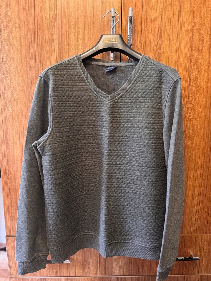Gri renkte, V yaka ve uzun kollu erkek kazak. Regular fit, örme dokulu ve sentetik kumaştan üretilmiştir, günlük rahat kullanıma uygundur.