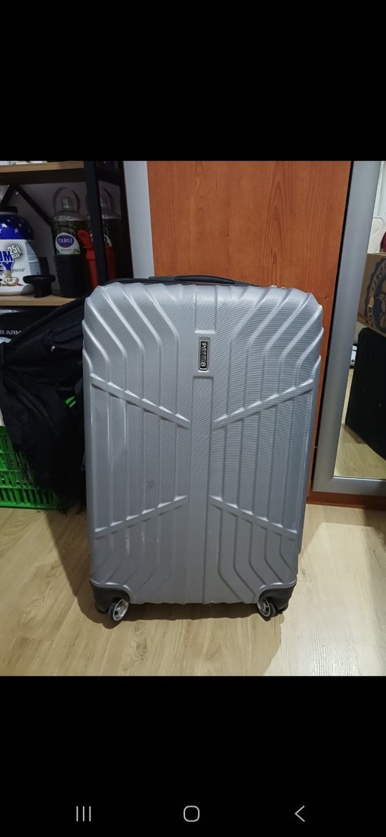 Toka detaylı, desensiz gri erkek valiz. Minimalist ve çağdaş tasarımıyla dört tekerlek üzerinde kolay taşınır. alan kisiye hayırlı olsun resimde görüldüğü gibidir ölçüleri bellidir her tarafını çekmeye çalıştım ihtiyac fazlasi bir tekerleği yok uçakta düşmüş boyle geldi resimlerde bellidir tamir gerekiyor onu. dışında içinde dışında hoc bir sorunu yoktur