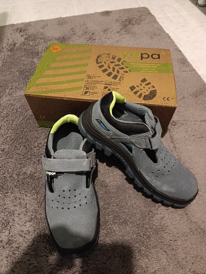 Gri erkek iş ayakkabısı kauçuk tabanlı ve Velcro kapamalı. sıfırdır kutusuyla gönderimi olacaktır