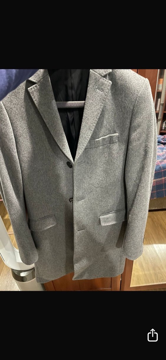 Gri renkte, yün kumaştan yapılmış erkek ceketi. Düğmeli, regular fit, uzun kollu ve normal boyda. Ofis ve günlük sokak stiline uygun, desen içermeyen şık bir model.etiketinde 44 beden yazıyor ancak 40 bedene daha uygundur düğmeler kapalıyken kolaltı göğüs ölçüsü 52 cm dir