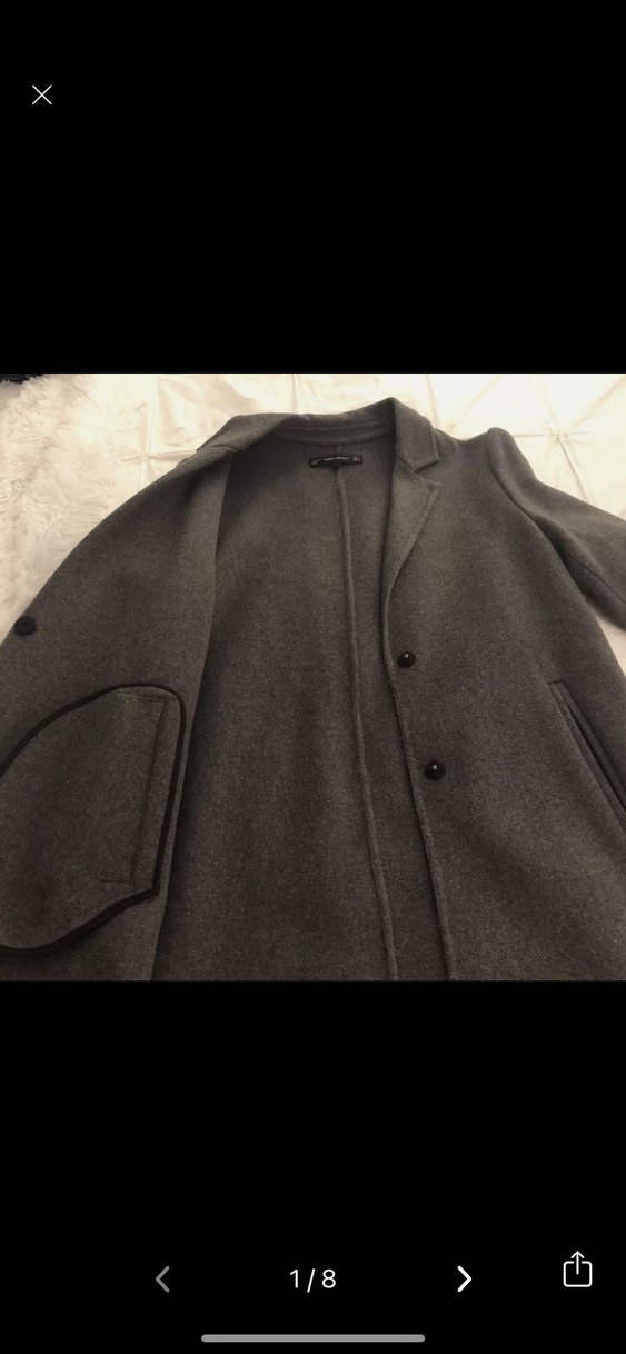 Gri renkli erkek yün kaban, düğmeli ve kesimli yakaya sahiptir. Uzun kollu, midi boy ve rahat kesimdir, günlük sokak stiline uygundur. Desensiz ve konforludur.