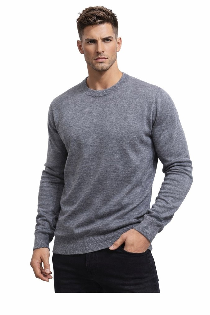 Gri Erkek Yuvarlak Yaka Kazak - Görsel 1