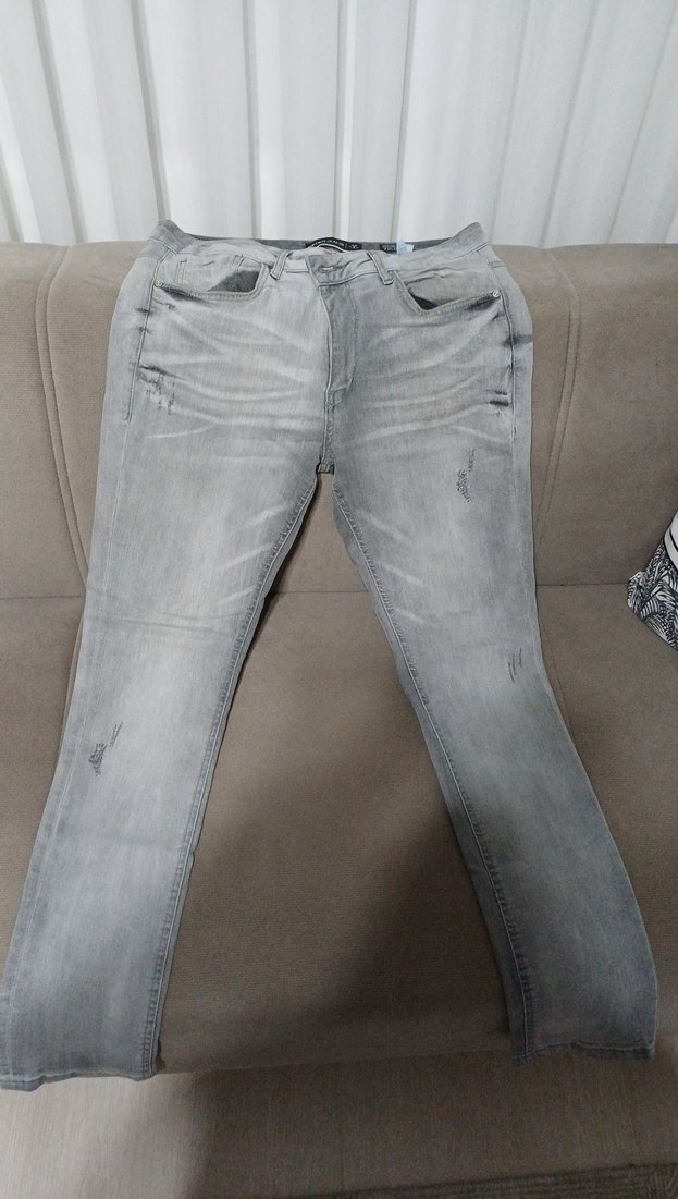 Gri kadın denim pantolon, normal boy ve regular fit. Tokalı detaylı, günlük sokak stili için uygun.
