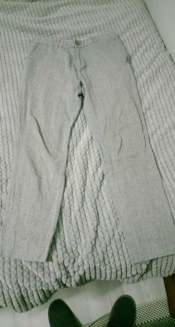 Gri renkli, keten kumaştan, örme dokulu, midi boy ve dar kesim pantolon. Rahat ve sade tarzıyla günlük kullanıma uygundur.