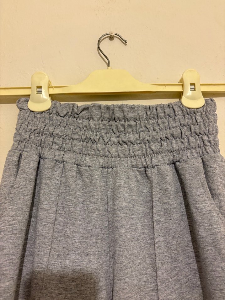 Gri lastikli bel detayına sahip, bol kesim kadın eşofman altı. Rahat ve günlük kullanıma uygun. Ultra yüksek bel