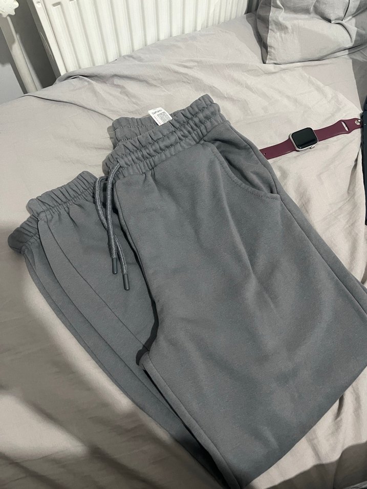 Gri renkli, rahat kesim ve orta boy uzunlukta kadın eşofman altı, lastikli bel ve bağcık detaylarıyla yumuşak ve sıcak kumaştan üretilmiştir.