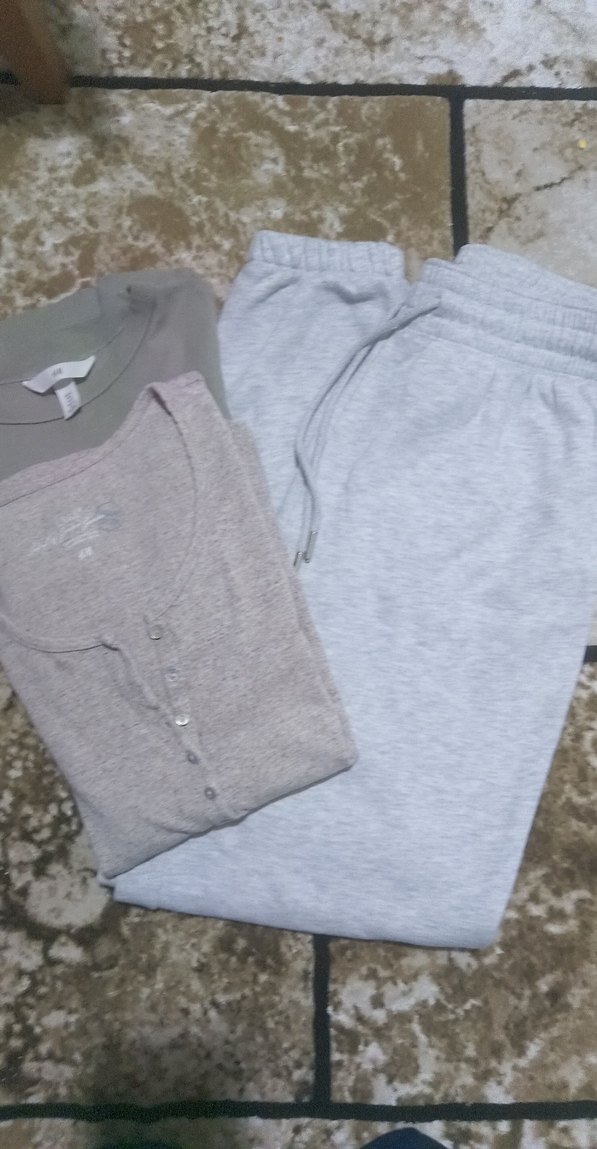 Gri Eşofman Altı Rahat Kesim,2 adet uzun kollu fitilli tişört