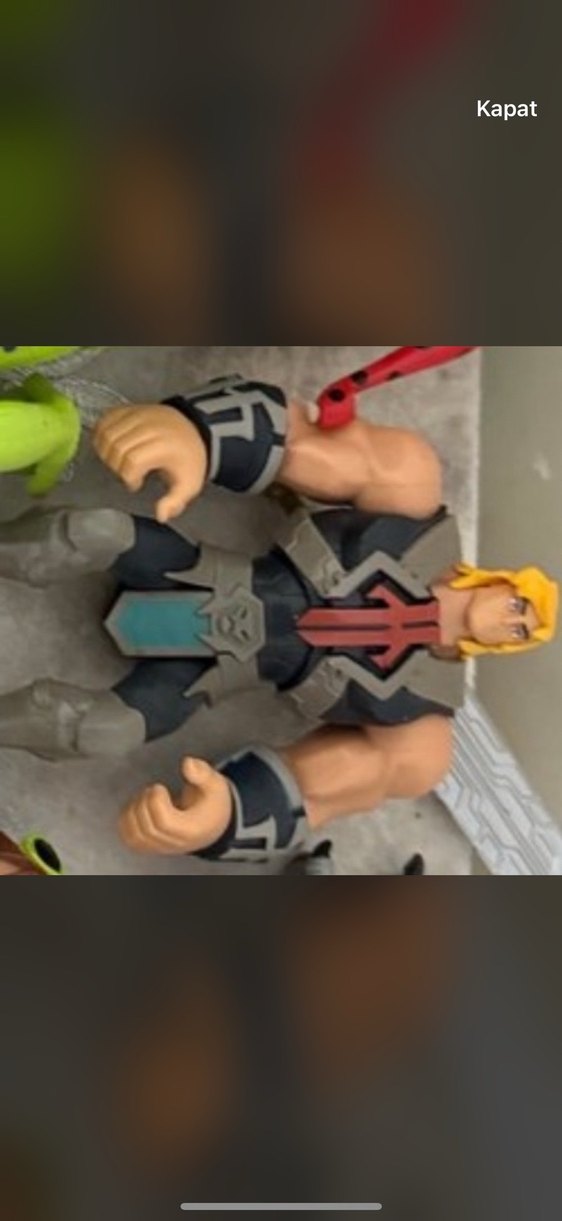 Koyu gri renkte, kaslı kollara ve ayrıntılı zırha sahip aksiyon figürü. Sarı saçlı ve figürün üzerinde canlı desenler bulunur.