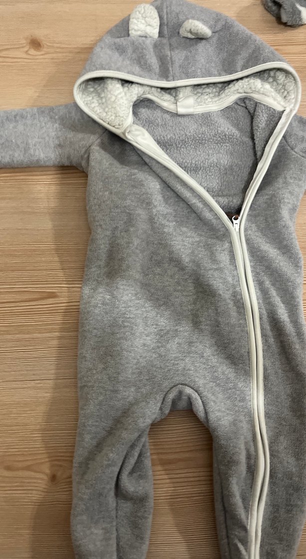 Bu bebek tulumu, yumuşak ve sıcak gri kumaş, tam fermuar ve kapüşon özelliklerine sahiptir. Deseni sade ve desensizdir. ❄️