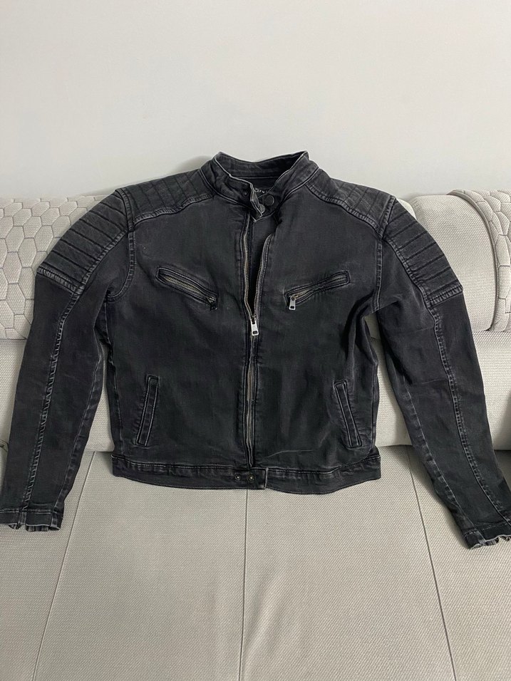 Fermuarlı detaylara sahip gri biker denim jean, günlük kullanım için trend sokak stilini yansıtıyor. ️