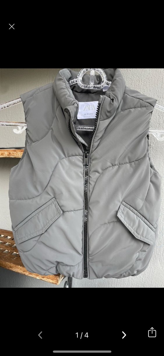 Yüksek yakalı, fermuarlı ve cep detaylı gri çocuk yelek. Yumuşak ve sıcak kumaştan, sokak tarzı için uygun, vücuda oturan kesim.
