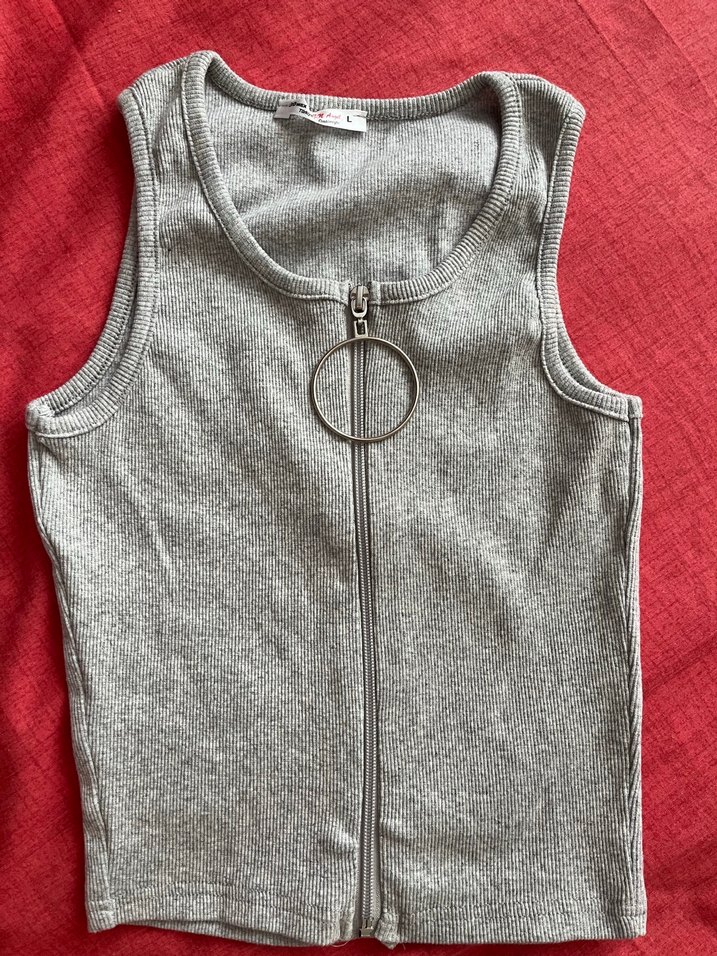 Gri renkli, fermuarlı crop s/m/l beden uyumlu