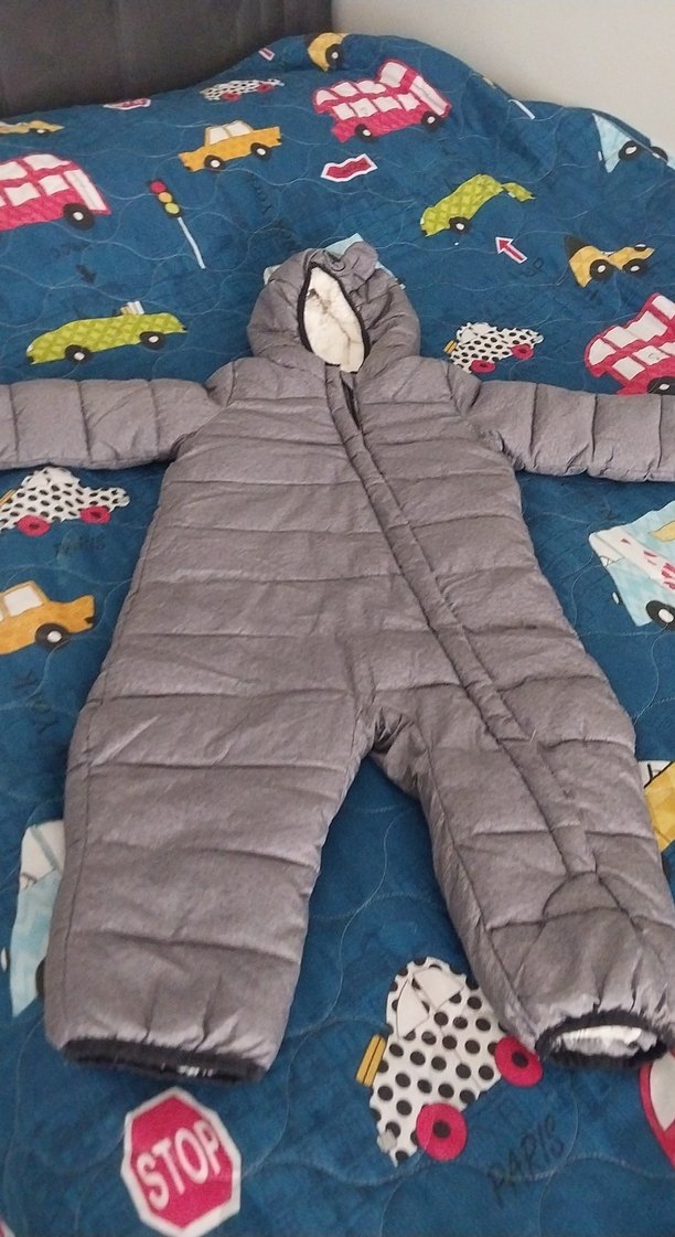 Gri renkli, fermuarlı erkek bebek tulumu, yumuşak ve sıcak kumaştan, kapüşonlu ve sokak stili için uygun. yurtdisindan alinmistir bir kaç kere giydi yepyeni kol ve bacak kısımlarında asla soğuk almıyor