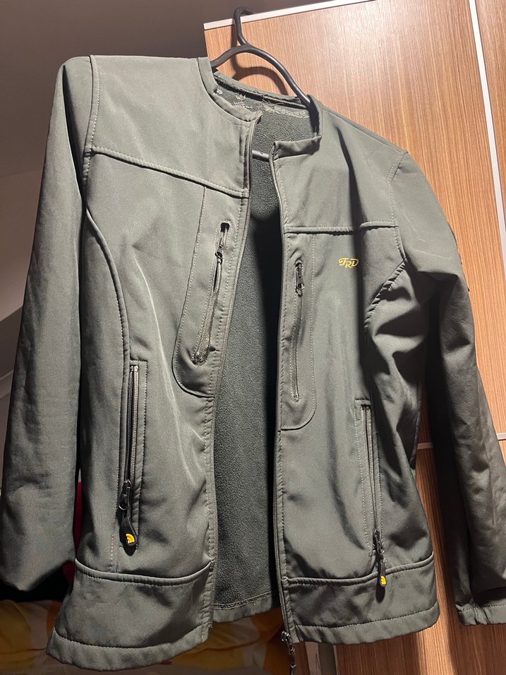 haki yeşili renkli, fermuarlı ve çok cepli erkek ceket. Dar kesim, normal boy ve uzun kollu, yakası notalıdır. Yumuşak ve sıcak kumaştan yapılmıştır.