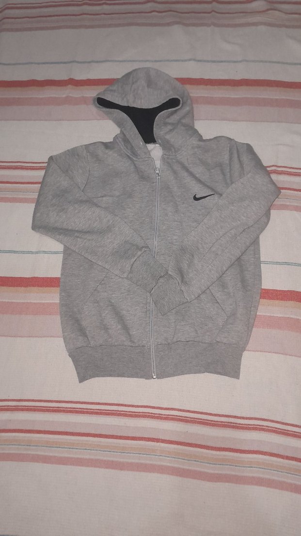 Gri renkte, fermuarlı ve kapüşonlu erkek için