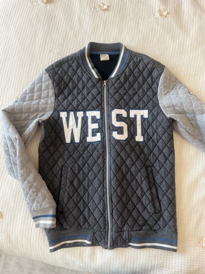 Fermuarlı ve bisiklet yaka olan bu erkek çocuk ceketi, rahat kesim ve kapitone pamuklu kumaştan üretilmiştir. Önünde 'WEST' nakış detayları vardır.