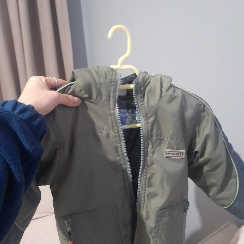 Gri renk, fermuarlı ve kesimli tasarımlı, yumuşak kumaştan yapılmış erkek çocuk montu. Sokak stili için uygundur.
