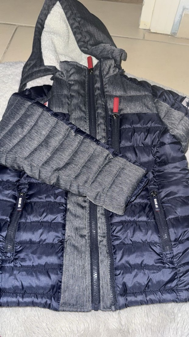 Fermuarlı ve yakası kesimli, gri renkli, yumuşak ve sıcak kumaştan yapılmış, dar kesim erkek çocuk montu. Sokak stiline uygun.