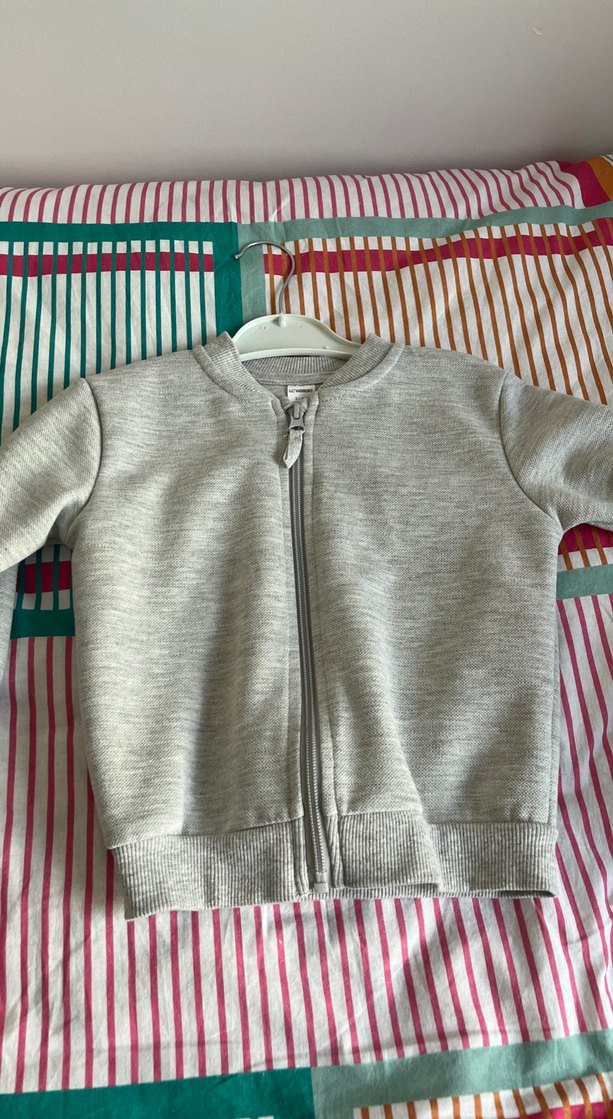 Fermuarlı ön kısmı ve uzun kollu, vücuda oturan gri erkek çocuk sweatshirtü. Yumuşak ve sıcak kumaştan, bisiklet yaka ve sade tasarımlı, sokak stili için uygun.