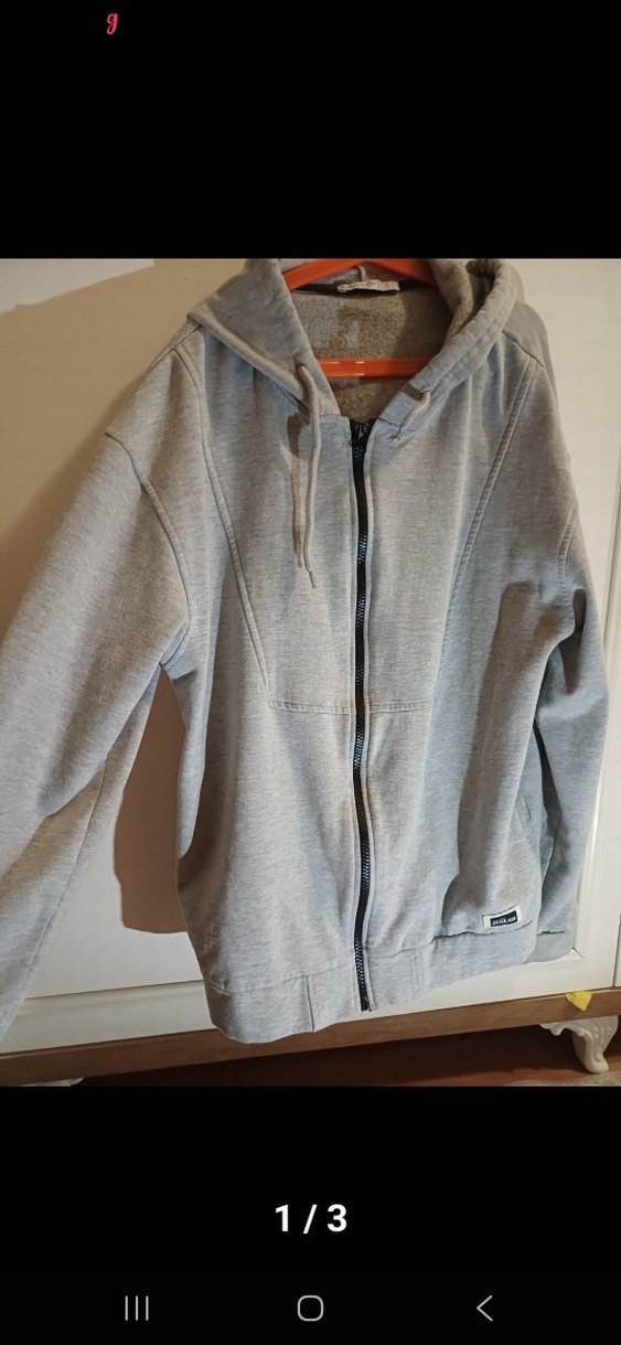 Gri renkli, fermuarlı erkek sweatshirt. Rahat kesim, uzun kollu ve yuvarlak yaka. Yumuşak kumaştan, günlük kullanıma uygun sade tasarım.