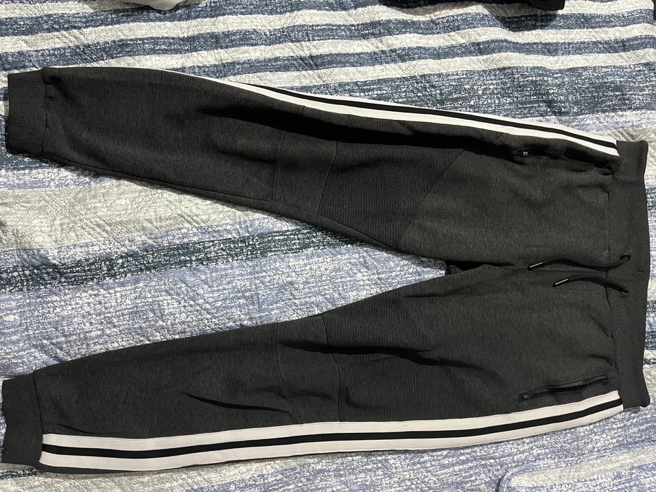 Gri renkli, fermuarlı ceplere sahip, sentetik kumaştan üretilmiş, spor ve sokak modası tarzında erkek eşofman altı. Cep fermuarlarındaki aparat kopmuştur. Net fotoğrafı ekledim.