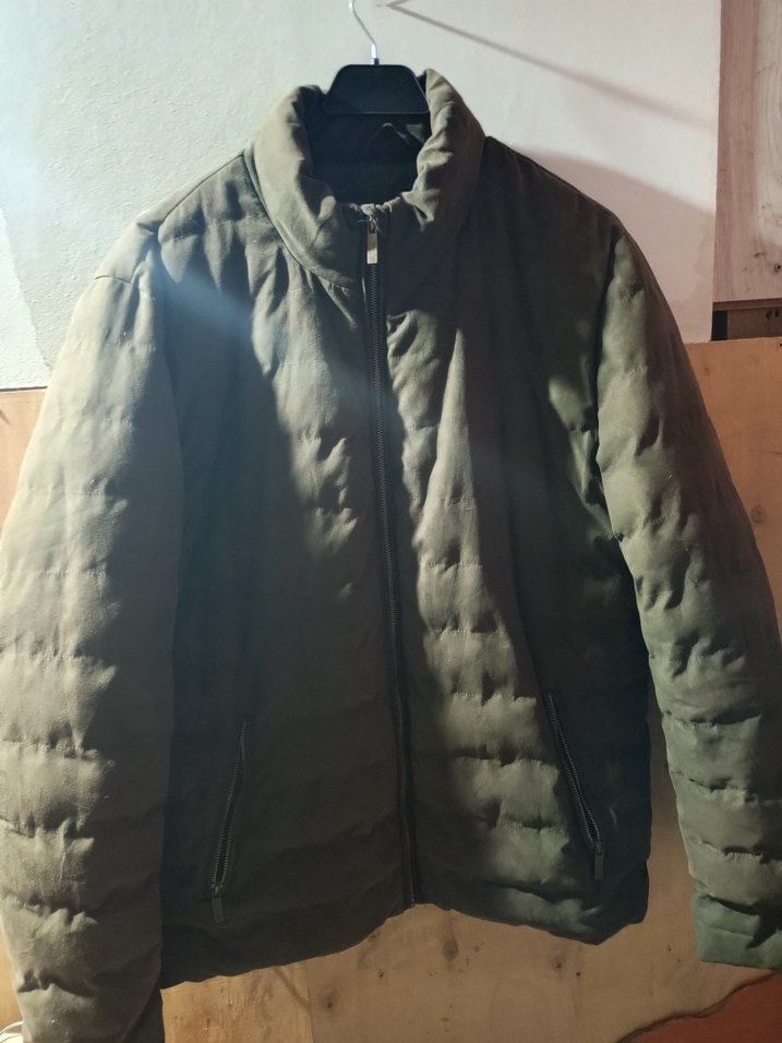 Gri renkte, fermuarlı ve uzun kollu erkek mont. Yumuşak ve sıcak kumaştan, yüksek yakalı, sokak stiline uygun rahat bir model.
