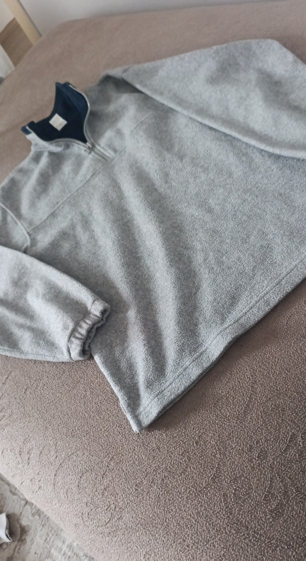 Gri renk, fermuarlı ve uzun kollu erkek polar sweatshirt. Rahat kesimi ve bisiklet yaka tasarımı ile günlük kullanım için uygundur.