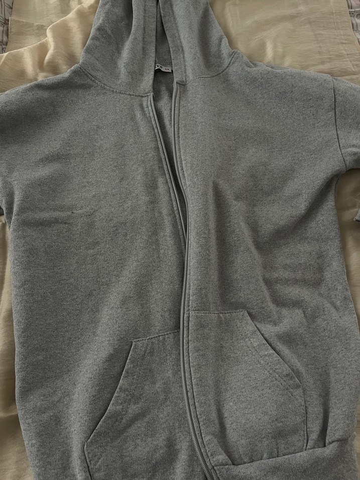 Gri renkte, fermuarlı erkek polar sweatshirt. Uzun kollu, yuvarlak yaka ve bol kesim ile sade ve rahat bir tasarıma sahiptir.