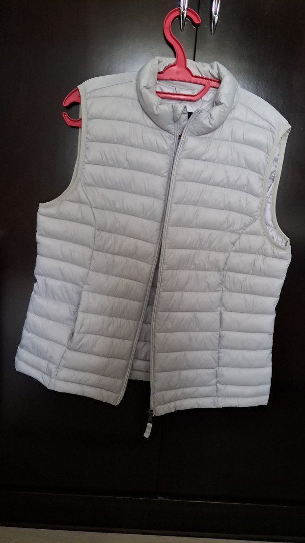 Gri renkte, fermuarlı ve kolsuz, kruvaze yaka detaylı şişme yelek. Günlük kullanıma uygun, normal boyda ve vücuda oturan kesim.